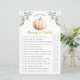 Add laughter and fun to your fall baby shower with this charming Mommy or Daddy game card from the A Little Pumpkin Is on the Way collection. Guests will love guessing who’s more likely to handle each baby moment — from diaper changes to bedtime stories! Featuring a soft watercolor orange pumpkin with eucalyptus greenery and ivory berries, this design blends rustic warmth with elegant fall style.