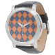 Die Raute ist hell orange und marineblau gehalten. Diese Uhr ist ideal für Männer oder Frauen. Das Design stammt aus der Originalkunst.