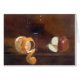Ein Ölgemälde in der niederländischen Art, die eine abgezogene Orange, ein Glas Rotwein und einen Apfel darstellt.