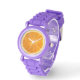 Uhr, Kinderuhr aus Edelstahluhr mit lila Lederarmband