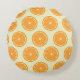 Orange Slice Pattern Round Throw Kissen - Ein nahtloses Design mit lebhaften orangefarbenen Scheiben auf hellem Hintergrund. Die spielerisch inspirierte Zitruskunst strahlt Frische und Fröhlichkeit aus, perfekt, um Ihrem kreativen oder organisatorischen Raum einen farbenfrohen Pop zu verleihen.
