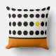 Freuen Sie sich auf ein amüsantes Kopfkissen mit spielerischen schwarz-weißen Polka-Punkten, fett-orangefarbenen Blockierungen und einer unerwarteten Touch Gelb. Dieses Design ist modern und minimalistisch, und es wird eine lustige Ergänzung zu einem Wohnzimmer, Schlafzimmer, Veranda, oder Patio. Auch macht ein großartiges Haus Erwärmung Geschenk für neue Hausbesitzer.