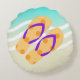 Orange Summer Beach Waves Flip Flops Dekorative Rundes Kissen