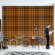 Rustikales Büffel im Bauernstil karierte gemusterte Tapete in warmen Orangen- und Schwarztönen