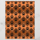 Niedliche Hundepfoten im Cartoon-Stil auf einem orangen und braunen Zickzack Muster. Das gesamte digitale Originalbild.