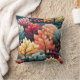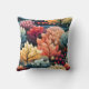 Dekorationskissen mit bunten Orangen-, aquamarin- und Gelbbbäumen.
