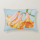 Bell orange ist ein kunstvolles Kissen in himmelblauer Farbe, das aus einem originalen Bleistift und Aquarellmalerei "Lilies" von Sarah Trett entworfen wurde.