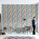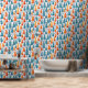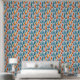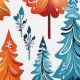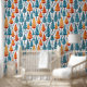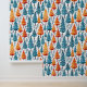 Winterfarbenblau und orange Kiefernspieß mit Wasserfarbe und abziehbare Tapete.