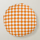 Orangefarbenes weißes Schachbrett Diamantmuster Rundes Kissen