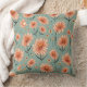 Dieses Kissen hat ein Muster orangefarbener Blume auf grünem Hintergrund. Es ist beruhigend, aber es ist eine Blume, also ist es geeignet, das Wohnzimmer zu dekorieren.