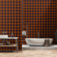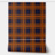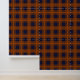 A tartan plaid pattern in deep orange hues on a navy blue background, inspired by and named for my home state of Florida. Very moody-looking, and great for maximalist or cabin-style aesthetics. The design has been carefully sized so that stripes are spaced out evenly when laying wallpaper sheets side by side.