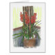 Rote Orchideen mit Bambusstöcken treffen eine große Blumenvorkehrung.