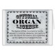 Offizielle Orgellizenz. Es gibt viele Aktivitäten, die verschiedene Ausrüstungen beinhalten, wie z.B. den Betrieb eines Automobils, Flugzeugs usw., die eine spezielle Ausbildung und Lizenz erfordern. Musik zu machen ist etwas, das normalerweise Training erfordert: Unterricht, Übung und Probe. Sollte nicht von den künftigen Musikern verlangt werden, dass sie eine Lizenz für den Betrieb der Ausrüstung, d.h. ihres Musikinstruments, erhalten?