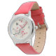Uhr, Kinderuhr aus Edelstahl mit rosa Lederarmband