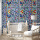 Diese luxuriöse Tapete zeichnet sich durch ein Muster aus, das auf osmanischer China mit Vogel und Tullips basiert.