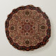 Kastanienbraun-, Bronze-und TANpersisches Blumenart-(geht hinsichtlich 16./des 17. Jahrhunderts) zurück, dekoratives rundes Wurfs-Kissen. Bild wurde auf diesem Einzelteil durch riverme* redigiert und angewendet.