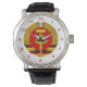 Mit dieser eleganten DDR-Armbanduhr tragen Sie einen Teil der dunklen Vergangenheit Deutschlands. Die Armbanduhr hat das alte Wappen der Deutschen Demokratischen Republik auf einem weißen Hintergrund mit dunkelroten Ziffern. Die Uhr kann individuell angepasst werden: Stil, Farben, Größe, etc. Für mehr Filmmaterial wie dieses besuchen Sie: www.zazzle.com/azorean*.