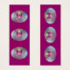 Pastellblau, Lavendel und rosa Design mit einem durchsichtigen rosa Ei in einem silberfarbenen filigranen Rahmen, umgeben von einem leicht silberfarbenen ovalen Rahmen-Set mit vier glatten Edelsteinen wie farbenfrohen Eiern.