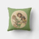 Hier ist ein wunderschönes Vintages Kunstbild von drei jungen Mädchen, die in ihren Osterkleider gekleidet sind und jeweils ein Symbol für Ostern tragen. Gerahmt in einem ovalen, auf einem grünen Hintergrund im Frühling gelegen, ist es ein schönes Kissen, das das ganze Jahr über benutzt werden kann.