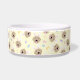 Eine niedliche Abbildung eines Golden Retriever Hundes mit sonnigen Ohren und einer niedlichen Osterbandana. Umgeben von verzierten Ostereiern, Frühlingsblumen und Schmetterlingen.
