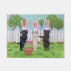 Labrador-Tür-Matte. Wunderliches und lustiges Ostern Labrador retriever malend gemalt von Naomi Ochiai von Japan. Schwarzer Labrador und Labrador-und Schokoladen-Labrador werden im Bild gemalt. Drei Labrador-Welpen tragen Häschen-Ohren auf ihren Köpfen und werfen für Ostern-Fotoschießen mit den bunten gemalten Eiern in den Körben auf. Gemalt im weichen Frühlingston. Nette Ostern-Geschenke für Hundeliebhaber, die Liebe Labrador-Retriever! verfolgt! Sie können Text besonders anfertigen, während Sie mögen. Entfernen Sie Beispieltext und -einsatz Ihr.