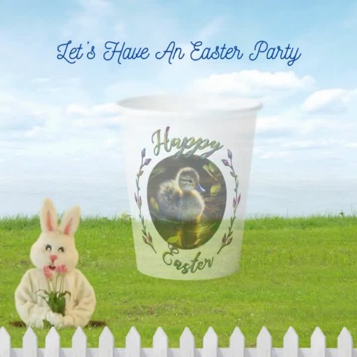 Osterhasen mit seinem Eierkorb vorne und ein kleines Küken mit einem Ostereier auf der Rückseite. Für die Abgabe all dieser phantastischen OsterBonbons Party.