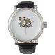 Uhr, Vintage Männeruhr mit schwarzem Lederarmband