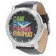Vintage Männeruhr mit schwarzem Lederarmband