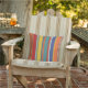 Das hübsche, hellblaue, rote, orangefarbene und aquamarin gestreifte Kissen mit Sitzgarnituren wurde für einen solchen Anlass entworfen. Jedes Kissen ist mit einer robusten und mildebeständigen UV-Behandlung beschichtet. Gestalte mit diesen stylischen Kissen für draußen eine luxoriöse Außenoase! Genießen Sie Ihr Outdoor Bright Blue Red Orange Aquamarin Stripe Design Kissen!