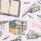 Zu Beginn des Buchclubs im Freien teilen sich die Teebecher, Bücher und Lesebrillen ihren Platz mit den seltsamen Vögeln. Teil der Living Outdoors Kollektion von cheriedesues_studio.