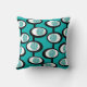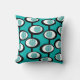 Dieses Kissen hat ein modernes Design von Linien, die Kreise in den Ovalen bilden, die in Türkis, Schwarz und Weiß zusammengeschraubt sind.