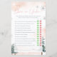 Über oder unter Babyduschkarten Babyduschenspiel, Winterthema mit Kiefern und Schneeflocken.