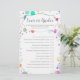 Diese Babydusche-Spielkarte bietet einen modernen Schriftart auf vielfarbigem Punktehintergrund, ideal für einen kleinen Jungen, ein kleines Mädchen oder eine Überraschung! Benutzen Sie diese Karte für Ihr Party.