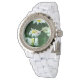 Eine wunderbare Damenuhr mit weißem Armband und grün-weiß-kariertem Ziffernblatt. Trägt sich ganz fabelhaft. Exzellenter Druck, sehr klare Farben. Schönes Design.