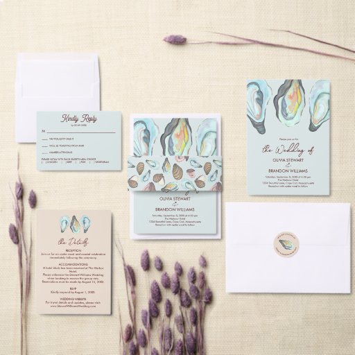 This round wedding save the date card features watercolor oysters arranged on a plate on the front, creating a coastal-inspired and artistic design. The back includes space for a favorite photo along with a QR code that links directly to your wedding website, making it easy for guests to access details with a quick scan. Blending coastal details with modern convenience, this save the date is perfect for couples planning a relaxed, contemporary celebration and coordinates beautifully with matching wedding stationery.