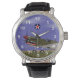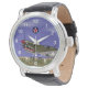 Uhr, Vintage Männeruhr mit schwarzem Lederarmband