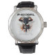 Uhr, Vintage Männeruhr mit schwarzem Lederarmband