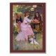 Ein Paar setzen draußen vor einer Weidentabelle unter Papierlaternen. Die Dame, die ein rosa Kleid trägt und ihr Haar oben hat, gießt Tee für den Herrn, der seinen Strohhut und Spazierstock unter der Tabelle beiseite geschaffen hat. Es gibt einen kleinen faltenden Schemel mit der dem Buch und dem Regenschirm Frau, die gegen ihn proped sind. Eine Vintage Illustration von einer Zeitschrift 1908.