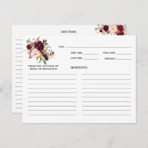 Burgund Floral Brautparty Rezept Card Begleitkarte