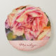 Painterly Pink Roses on Damask Mit Monogramm Rundes Kissen