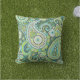 Dieses Kissen im Freien ist mit einem kühnen Paisley-Muster in Kalkgrün und Türkis gestaltet, um den Innenhof, das Deck oder die Veranda zu erhellen.