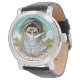 Uhr, Vintage Männeruhr mit schwarzem Lederarmband