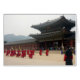 Gyeongbokgung Palace, Seoul, Südkorea. Gyeongbokgung, auch bekannt als Gyeongbokgung Palace oder Gyeongbok Palace, ist ein königlicher Palast im Norden von Seoul, Südkorea. Es wurde 1394 erbaut und 1867 rekonstruiert. Es war der größte und größte Palast der fünf großen Paläste, die von der Joseon-Dynastie gebaut wurden. Der Name des Palastes, Gyeongbokgung, übersetzt sich in englischer Sprache als "Palace of Shining Happiness". Der Palastkomplex, der im frühen 20. Jahrhundert von der japanischen Regierung fast zerstört wurde, wird langsam wieder in seiner ursprünglichen Form vor der Zerstörung aufgebaut.