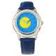 Kinderuhr aus Edelstahl mit blauem Lederarmband