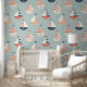 Pale green nautical with sail boats, seamless pattern wallpaper; great addition to any infant, child's bedroom or other.