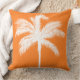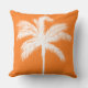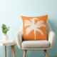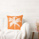 Modernes tropisches Thema auf diesem hellen, orangefarbenen Kissen