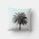 Elegante Palmen bilden einen Teil der Baumkronen über den Namen auf dem Kissen zu werfen. Elegantes tropisches Vintages Design. Der Palm steht auf einem Hintergrund von modernem Blau. Auf der Rückseite wiederholt sich die Palme.