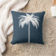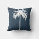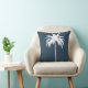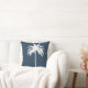 Elegante, weiße Palmen bilden einen Teil des Baumkronen auf dem Kissen. Elegantes tropisches Vintages Design. Der Palm steht auf einem blauen Hintergrund. Auf der Rückseite befindet sich das Palmbaummuster. Die Auflistung wird über den Link auf dieser Seite angezeigt.