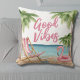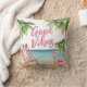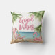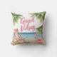 Personalisiertes Watercolor Beach House Kissen. Ein cooles Strandthema in Rosa und aquamarinen Farbtönen, das den Blick auf einen Strandausflug oder eine angenehme Stimmung freigibt. Niedlicher, rosa und weißer Liegestuhl, Regenschirm und sogar eine Flamingo-Floaty, um sich zu amüsieren. Palmen schweben, Muscheln sammeln - alles dreht sich um diese kühlen tropischen Strandbäume. Mit modernen Schriftart fügen Sie eine stilvolle Drehung. Ideal für ein Ferienhaus, oder einfach wenn Sie gewollt, ein wenig tropisches Ambiente in Ihre Zuhause zu bringen.