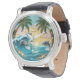 Palm Trees, Jumping Dolphins, and Ocean Sunset Armbanduhr